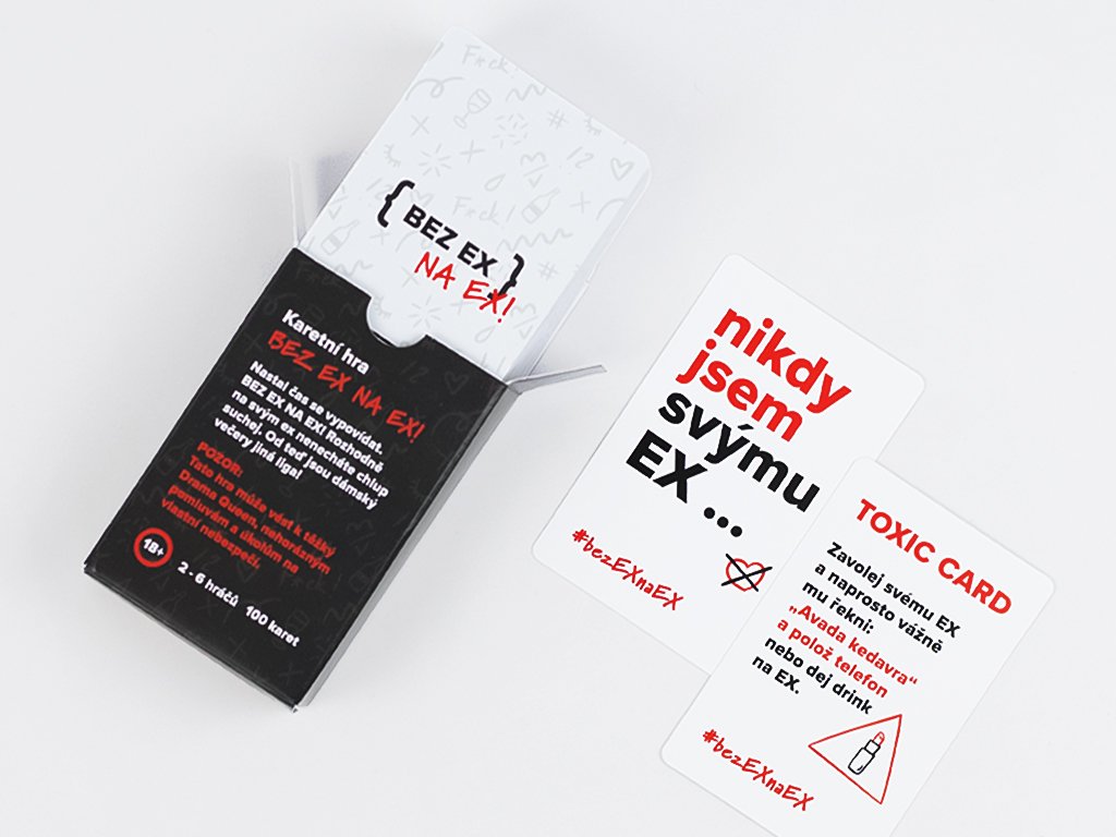 Karty jsou buď přiznání (tím nemáme na mysli ty klasické nic neříkající přiznání), nebo úkol „na vlastní nebezpečí“ - některé jsou tak za hranou, že by nám je na internetu okamžitě zcenzurovali. Když si myslíte, že to víc hard už nejde, přijdou na řadu TOXIC karty, KALBA karty a „Nikdy jsem svému ex…“, po kterých se budete chtít dobrovolně odhlásit ze života (minimálně ze všech sociálních sítí).Věřte nám, testnuto na víc než 140 holkách - odpověď se vždy shodovala: „TOTÁLNÍ MASAKR“